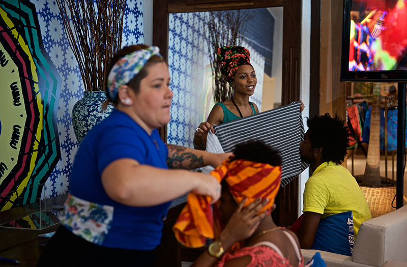 A ação aconteceu nos dias 19, 20 e 21 de novembro no shopping, onde turbanteiras produziram turbantes para clientes, trazendo todo charme e história desse acessório icônico e importante na tradição da cultura e da moda africana.